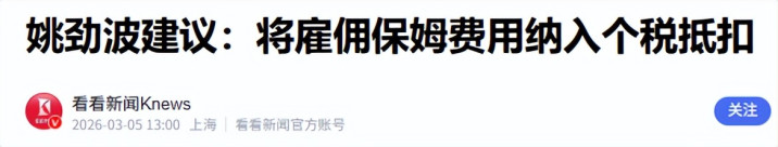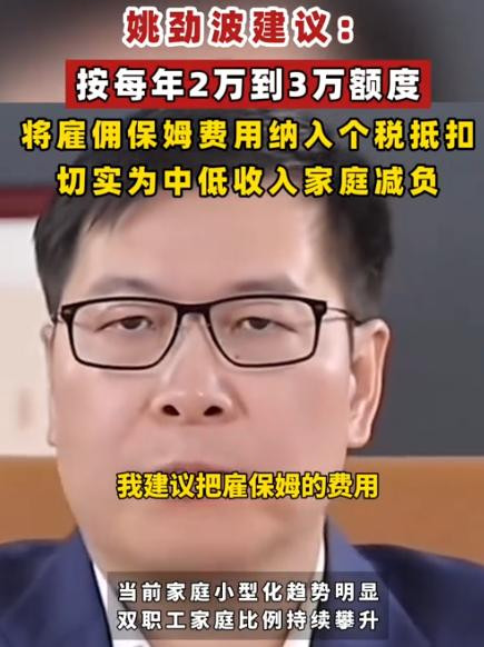 他建议,把雇佣保姆护理“一老一小”的用度,纳入个东说念主所得税专项附加扣除。