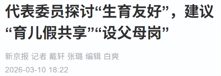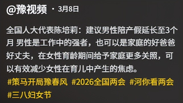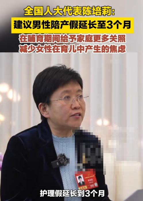 世界东说念主大代表陈培莉建议,把男性陪产假延迟到3个月。