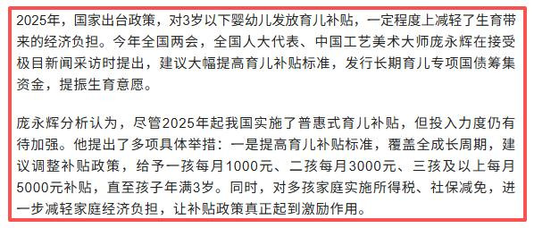 2025年,国度启动给3岁以下婴幼儿发补贴。