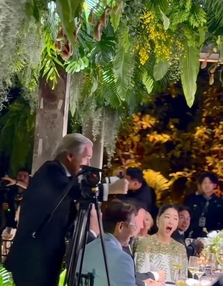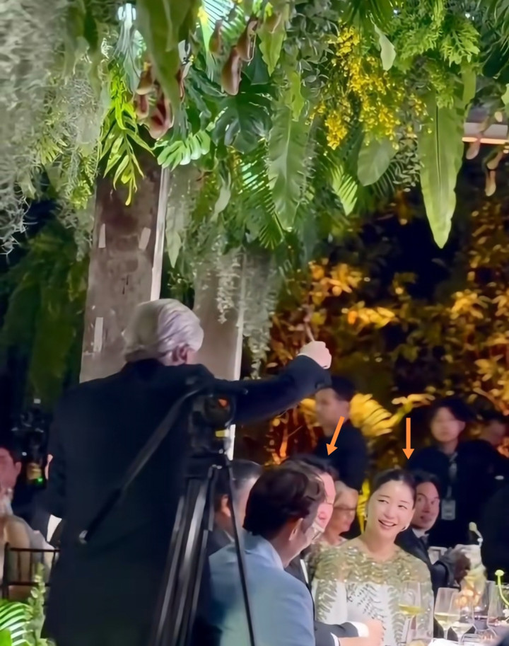 值得防卫的是,在一众名东谈主身影中,还出现了韩国财阀崔泰源过火情东谈主金熙英。据悉,崔泰源,是SK集团会长,1988年与韩国前总统卢泰愚的大女儿卢素英成亲,婚后育有一子二女。