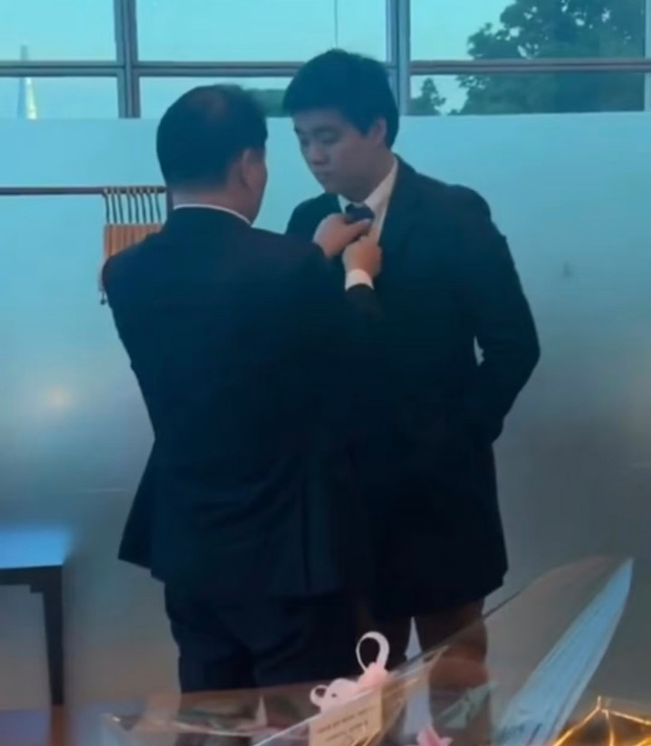 崔泰源身穿白色衬衫,搭配玄色西装,皮肤很白。仔细看发现,他手抖得很锐利。而据公开辛苦,他出身于1960年,现年才66岁傍边,普通来说不应该出现这个情况。