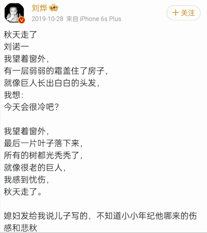 在收到太太发来的信息后,感动不已的刘烨遴荐径直在酬酢平台和内行共享。