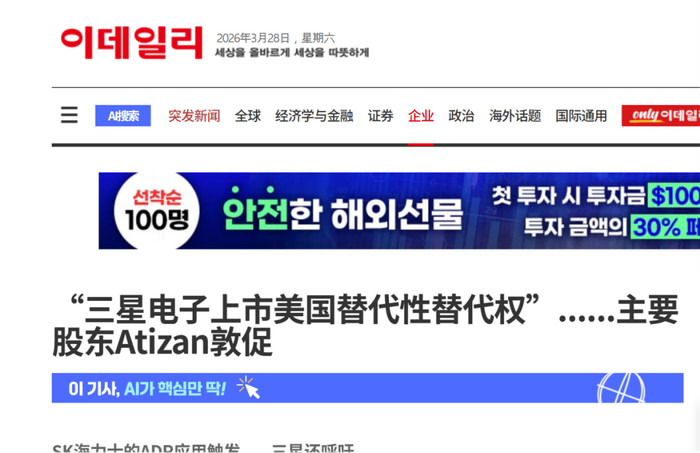 [环球网财经详尽报谈]近期,韩国存储芯片行业掀翻赴好意思上市飞扬。继SK海力士本周风雅提交好意思股存托根据(ADR)上市肯求后,三星电子大推动公开垦声,力促三星效仿同行,运转关系上市筹画,估值培植成为这次韩系芯片巨头出海融资的中枢诉求。