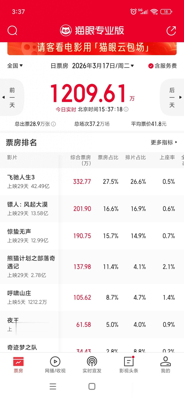 当天及时票房
